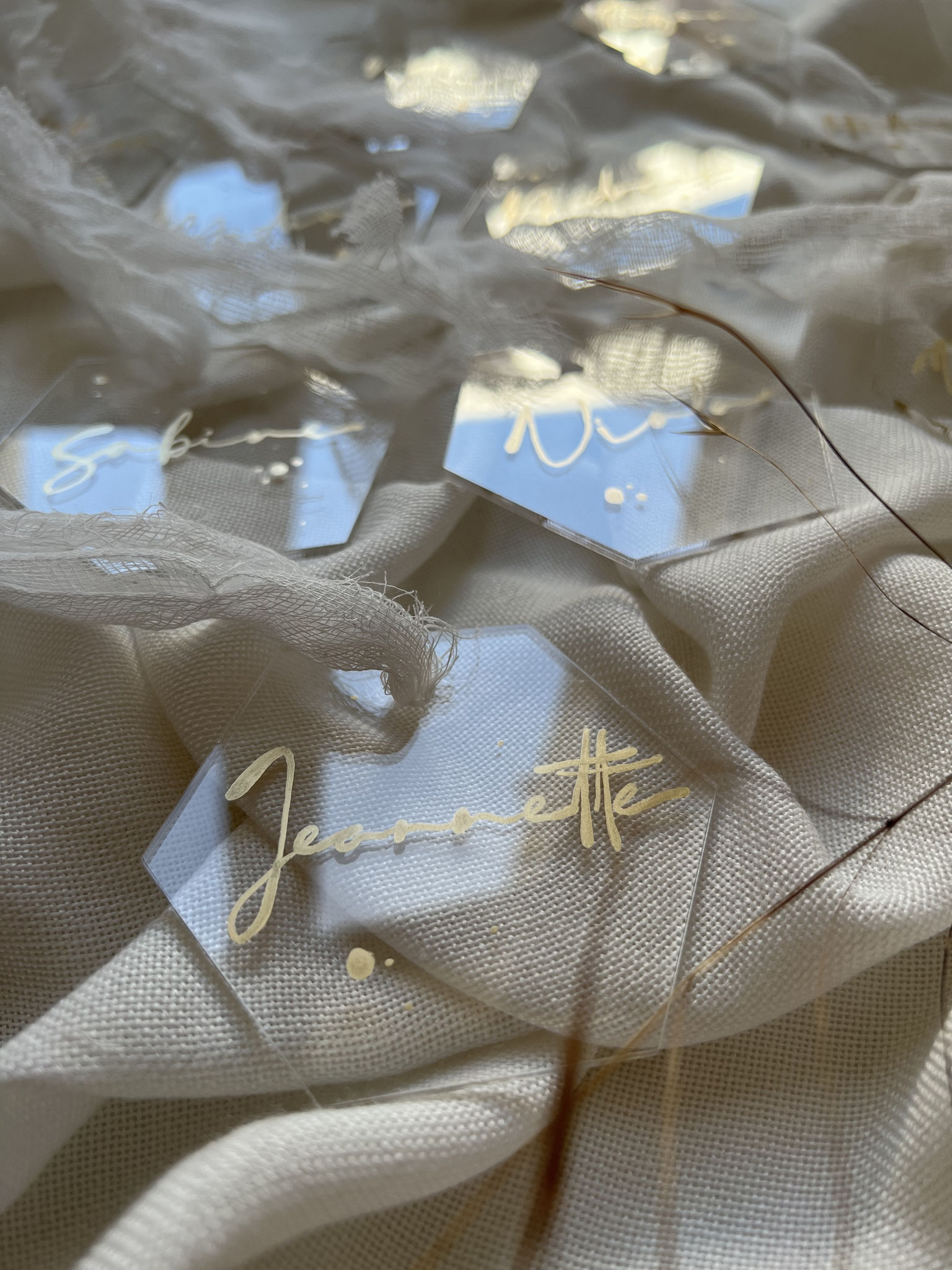 Ab 10 von Hand in moderner Kalligrafie mit goldfarbener Tinte beschriebene echte Muschelschalen (falls ihr sie lieber in silber, weiß oder schwarz beschrieben wünscht, schreibt es bitte dazu).